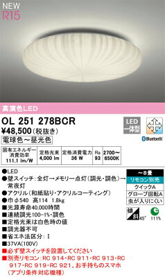 オーデリック ODELIC 和風 照明 調光調色シーリングライトOL251278BCR 電球色〜昼光色アクリル和紙貼り・アクリルコーティング ツバ付丸形引掛シーリング取付 Bluetooth対応機種 高演色LED〜8畳 アクリルグローブに細い和紙片を貼り重ね