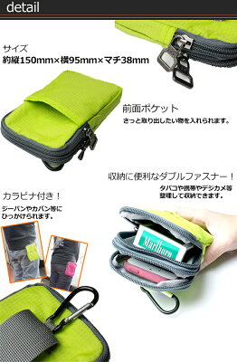 カラビナ付き マルチポーチ ダブルファスナー 全6色 【カラー】 ピンク/オレンジ/レッド/ブルー/ライム/ブラック ■仕様 前面ポケット×1 メインポケット×2 カラビナ付きなので、ジーンズやカバンなどにかけられます。