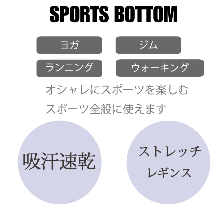 気になる腰回りのラインをカバー ヒップも隠れ便利 脚にしっかりフィットし動きをサポート ジムやストレッチ、ヨガ、ウォーキング、ジョギングなど様々なスポーツで活躍 リラックスタイムにもおすすめです。