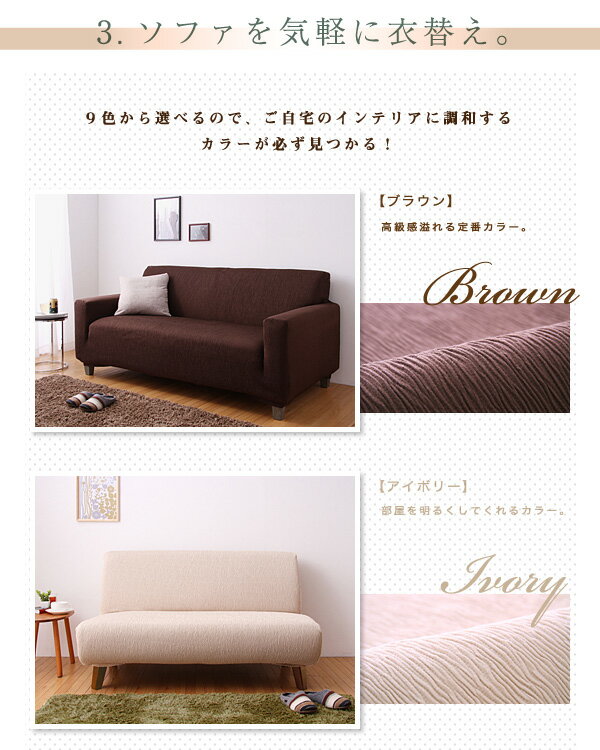 素材: ポリエステル95%/ポリウレタン5%サイズ: 肘付2.5人用適応ソファーのサイズ幅(約)131cm〜159cm奥(約)70cm〜80cm高(約)80cmまで(脚の高さは除く)【送料について】北海道・沖縄・離島は別途送料がかかります。